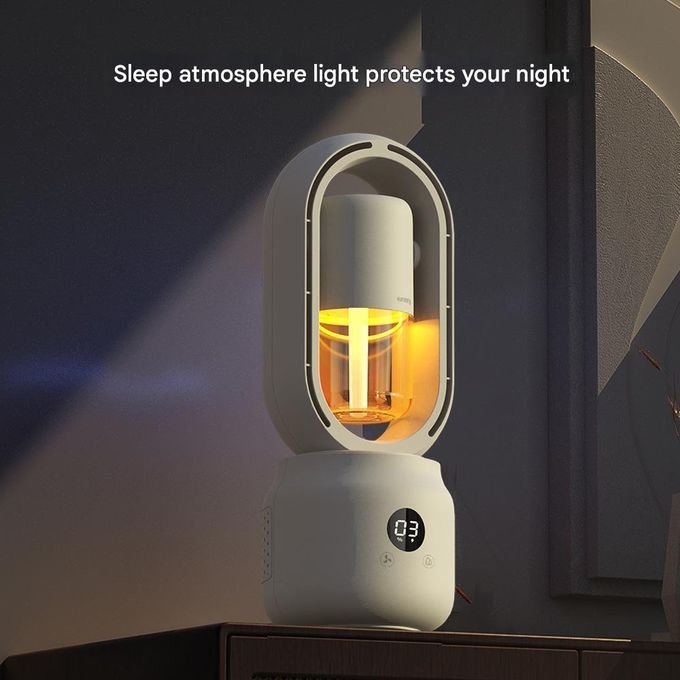 As a humidifier, the device releases a fine water mist that helps maintain balanced air moisture, relieving dryness and improving indoor air quality. It also doubles as an aroma diffuser, allowing you to add essential oils for a refreshing and relaxing atmosphere. The integrated lamp function provides soft ambient lighting, ideal for reading or creating a calming environment.