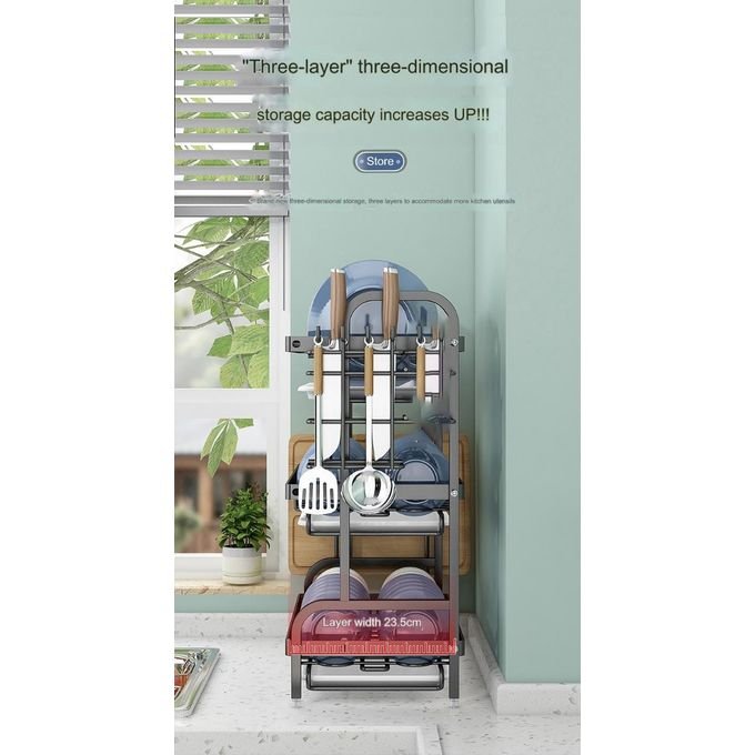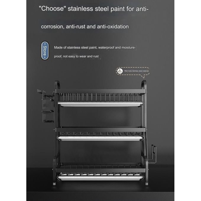 Upgrade your kitchen organization with the 3-layer dish drainer, designed for multipurpose functionality and efficient space utilization. This sturdy plate organizer features a thickened, durable structure that supports heavy loads while resisting rust and corrosion, ensuring long-lasting use in any kitchen environment.