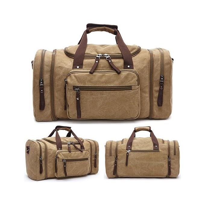 Large Capacity Duffle Bag – Canvas Expandable Travel Bag – Brown